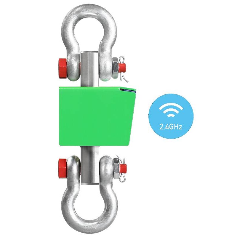 Dinamometro elettronico MCWNRF, con modulo di trasmissione peso integrato che permette di comunicare con ripetitore (DISPLAY) remoto. Grazie alle dimensioni compatte, questi dinamometri comportano una minima riduzione della distanza di sollevamento.