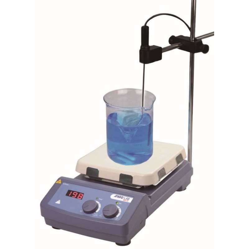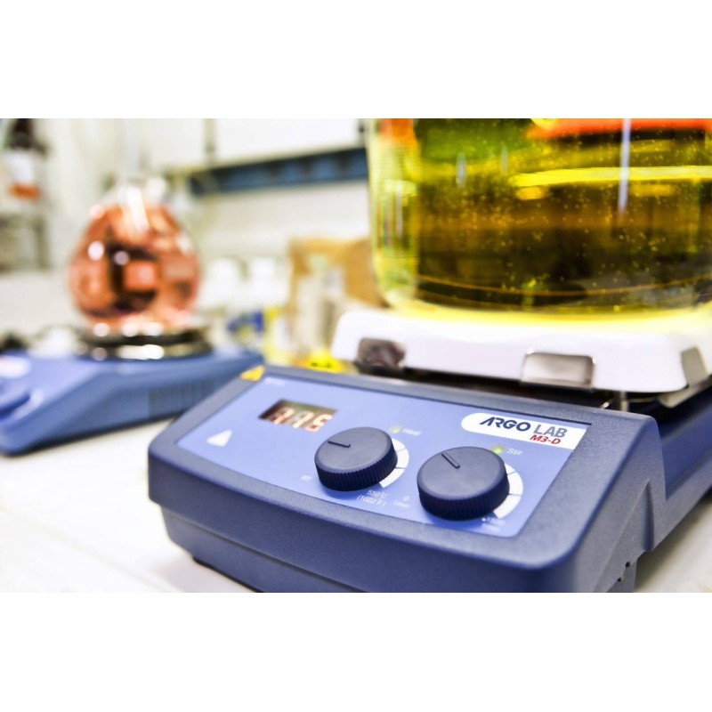 Agitatore magnetico digitale ARGOLAB M3-D dotato di piastra in vetroceramica che può raggiungere un riscaldamento fino a 550°C misurabile con sonda PT100 grazie all'elevata potenza di riscaldamento che raggiunge i 1000W.Il display led fornisce indicazione continua della temperatura. Il volume di agitazione gestibile è 10 litri. Supporti, sonde di temperatura e blocchi porta-provette come accessori