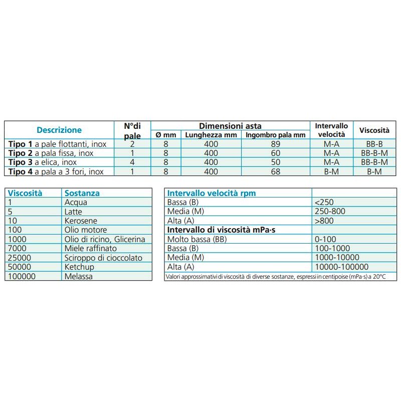 Asta di agitazione ad elica. Genera un flusso assiale nel recipiente con suzione della sostanza dal