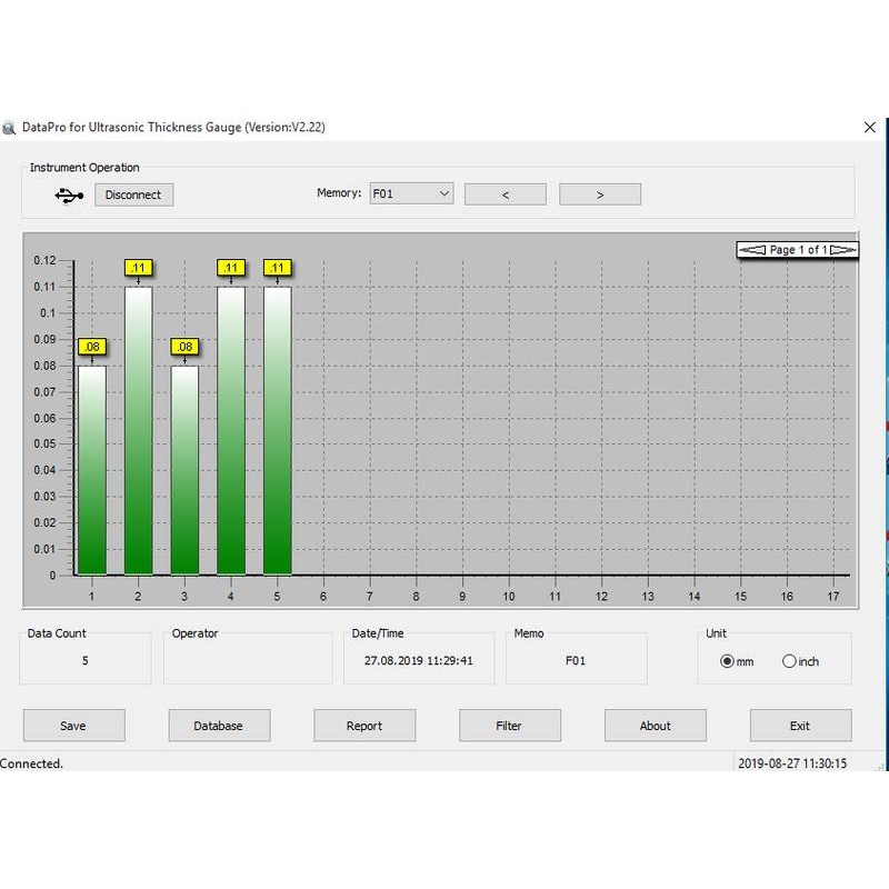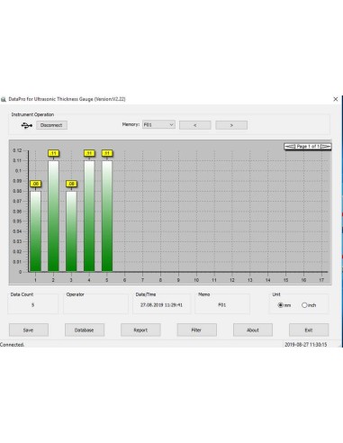 ATU-04 Software di trasmissione dati, cavo di interfaccia incluso. Ideale per acquisire i dati di misurazione dalla memoria dati interna dello strumento di misurazione e importarli in Excel. Adatto per Spessimetri SAUTER TD-US, SAUTER TC, SAUTER TE, SAUTER TF, SAUTER TG, TU. Durometro SAUTER HD. Compatibile con i seguenti sistemi operativi: Microsoft Windows 7, 8.1,10.