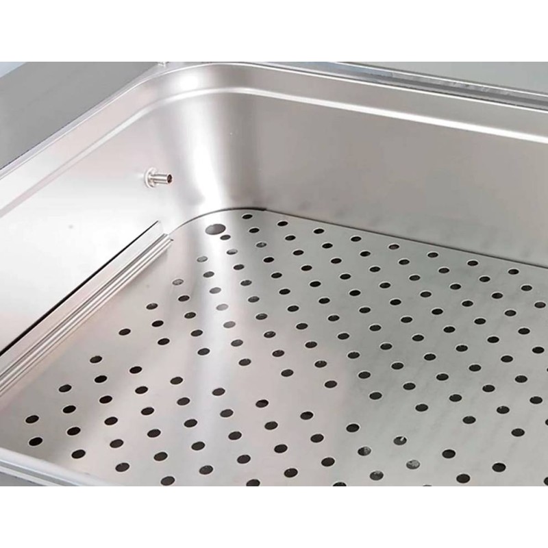 Vasca interna e piatto di fondo forato (removibile) in acciaio inox di alta qualità.