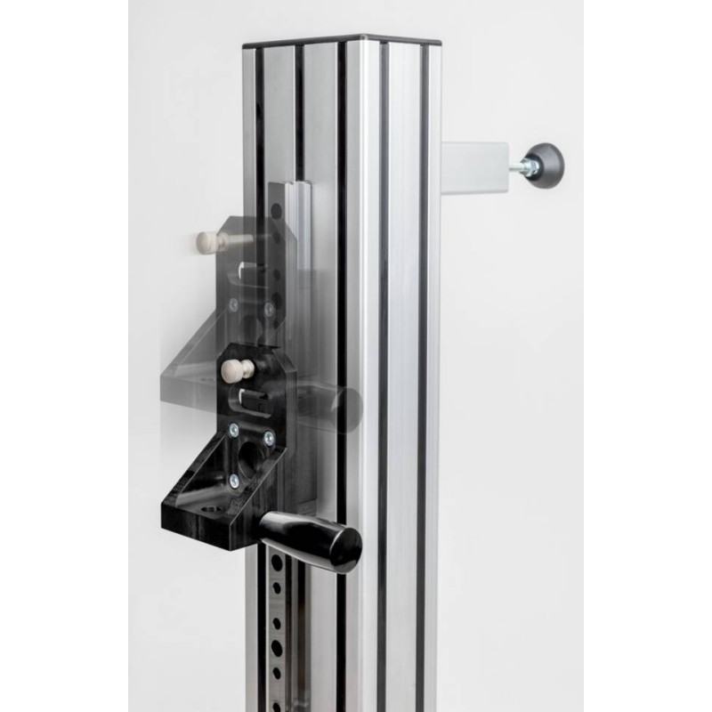 La struttura in alluminio ad alta rigidità assicura stabilità anche sotto carichi elevati, mentre la piastra di base con filettatura M12 consente un fissaggio solido e versatile degli accessori e dei sensori di forza. Regolazione rapida della traversa: efficienza operativa