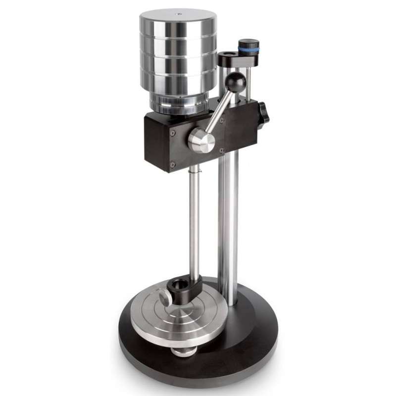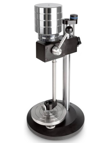 Dati tecnici : Alzata massima: 20 mm; Altezza massima dell’oggetto di prova: 50 mm; Tavolo di prova ∅ 115 mm. Dimensioni totali LxPxA : 200×200×470 mm.