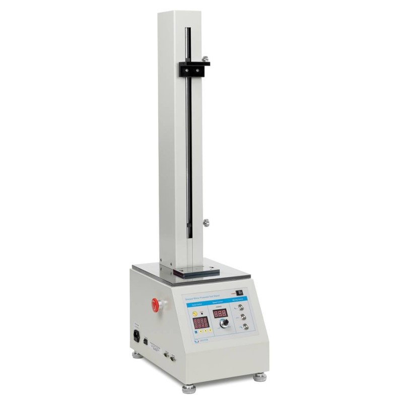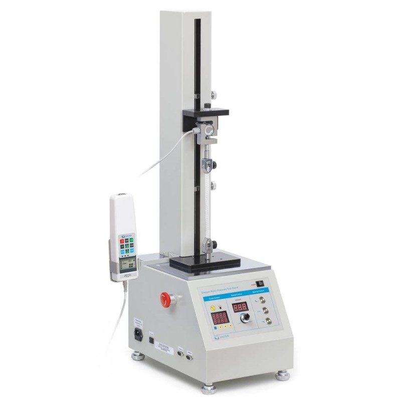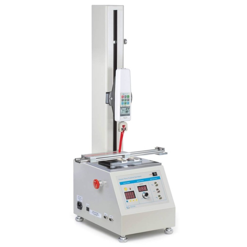 SAUTER TVO-S. Banco dinamometrico motorizzato verticale per prove di trazione, pressione e forza. Dotato di motore passo-passo può essere configurato con diversi strumenti di misura della forza Sauter per eseguire prove di compressione e trazione. Questo strumento è in grado di ospitare misuratori di forza con campo fino a 2kN. Modalità di funzionamento automatica e manuale.