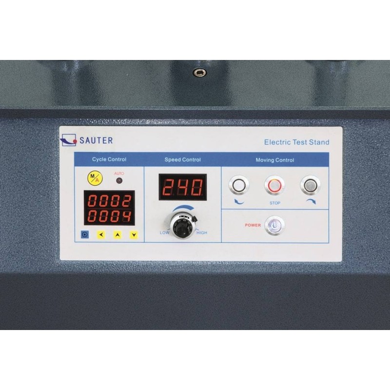 I banchi di prova Sauter TVS includono anche un pannello operativo. Tramite questo pannello, l'utente può visualizzare il display digitale della velocità, nonché accedere alla funzione di ripetizione digitale. Sono apparecchiature versatili, adattabili e facili da usare; sono ideali per eseguire prove di compressione e trazione.