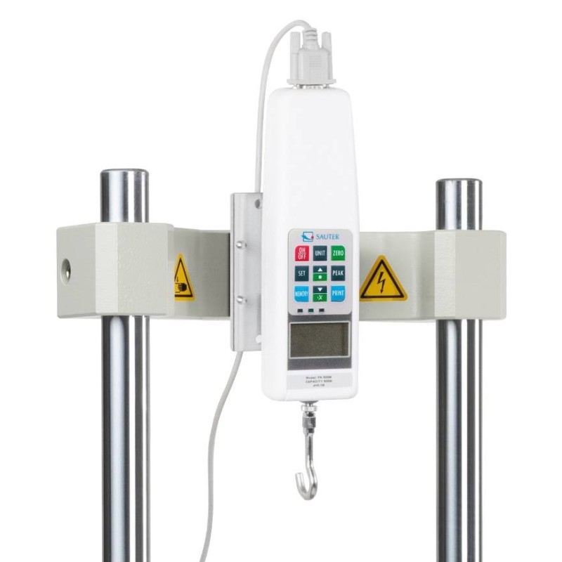 Utilizzare con una varietà di strumenti di misura di forza e lunghezza di Sauter per eseguire prove di forza di compressione e trazione. Fornito di serie con uno strumento di misura della lunghezza Sauter LA con una lettura di 0,01 mm. Può essere utilizzato per eseguire prove di spostamento forza (richiesti elementi aggiuntivi, vedere 'Accessori').