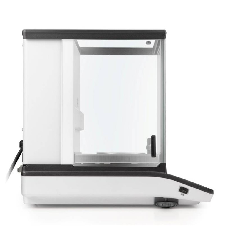 Bilancia analitica KERN ABP, fascia premium, con display OLED ad alto contrasto. Tempi di stabilizzazione 2 secondi nelle versioni 0.1 mg e ripetibilità nettamente migliorata. Calibrazione automatica interna, campo di portata fino a 320 g e nuova generazione di cella di carico per risultati più accurati e sensibilità di 4 e 5 decimali. Interfaccia USB e seriale in dotazione e pesata minima.
