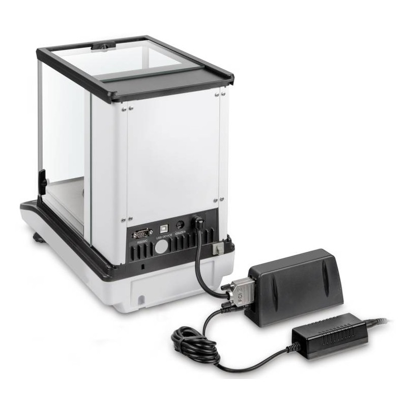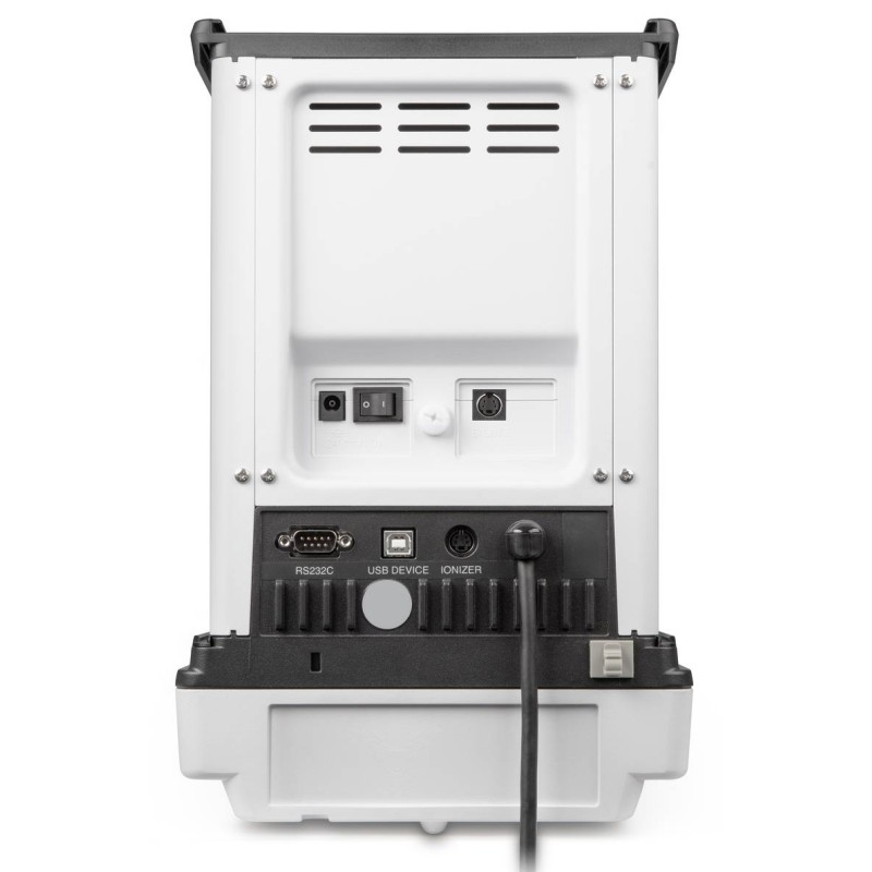 La ventola ionizzatore può essere attivata premendo un pulsante; questo ventilatore può essere utilizzato per neutralizzare la carica elettrostatica per installazioni fisse nella bilancia analitica. Ciò aumenta la velocità e la comodità del processo di ionizzazione.