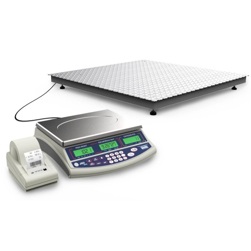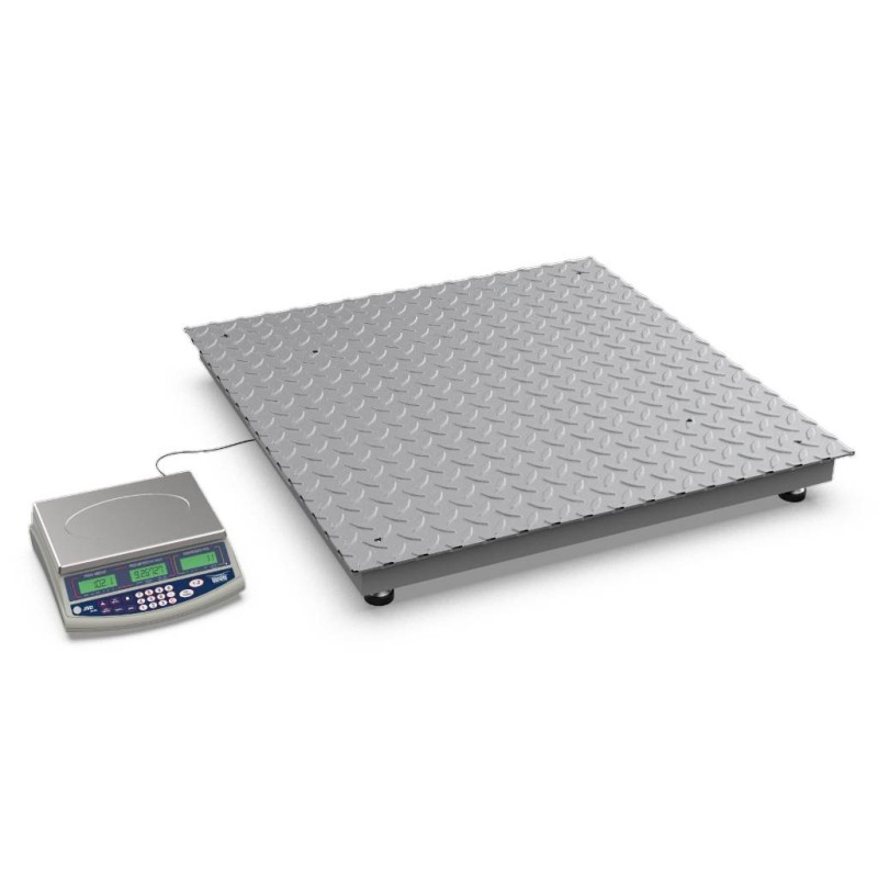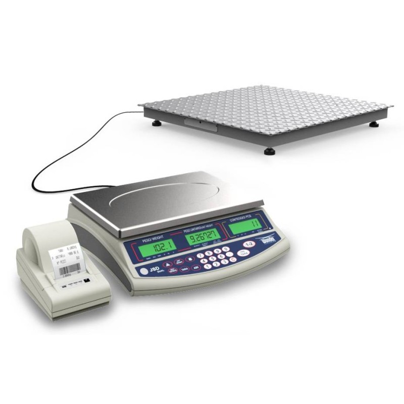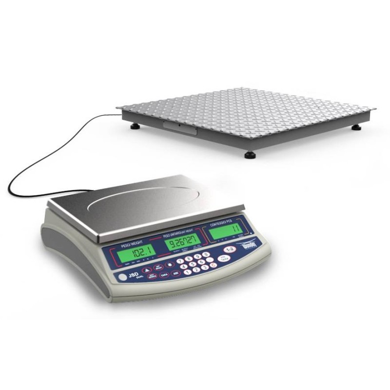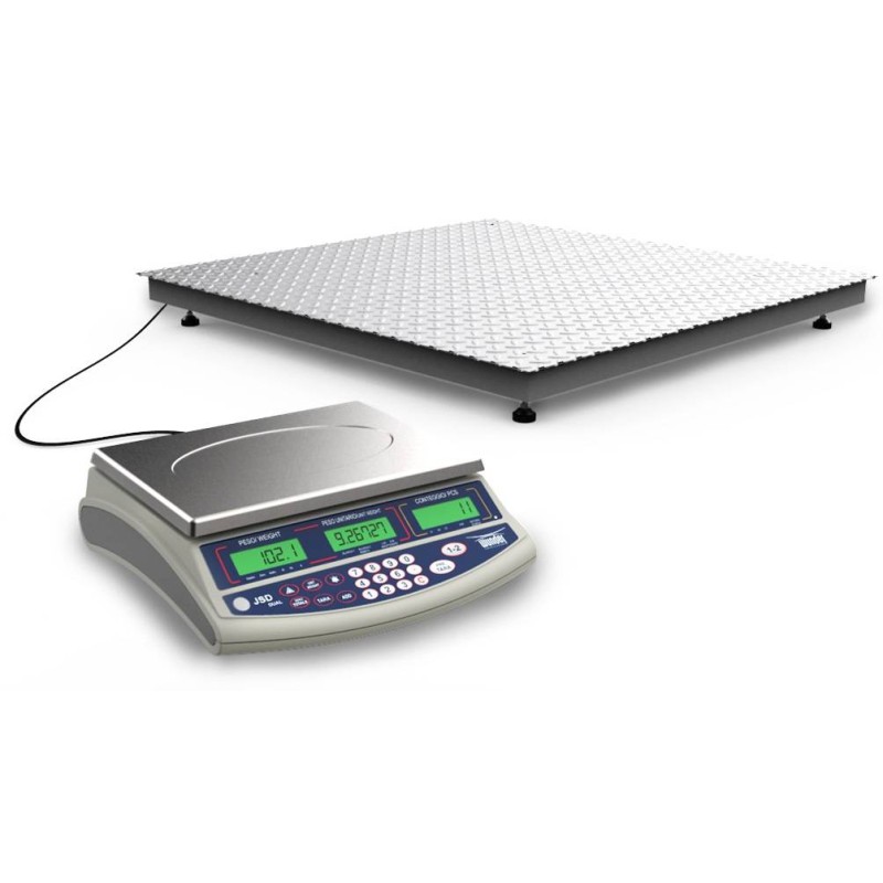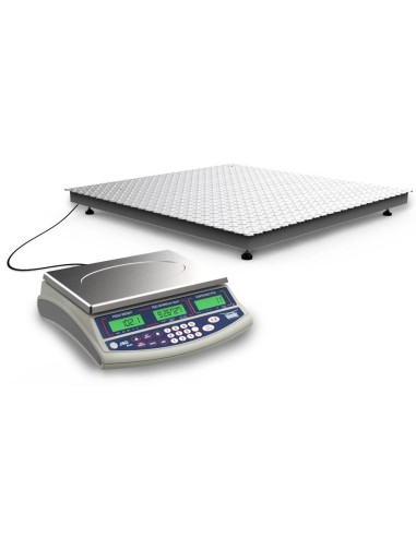 Versione da 3.000 Kg: Bilancia contapezzi con portata massima di 30 Kg e divisione di 0,5 g, abbinata a una piattaforma con portata massima di 3.000 Kg e risoluzione di 200 g.