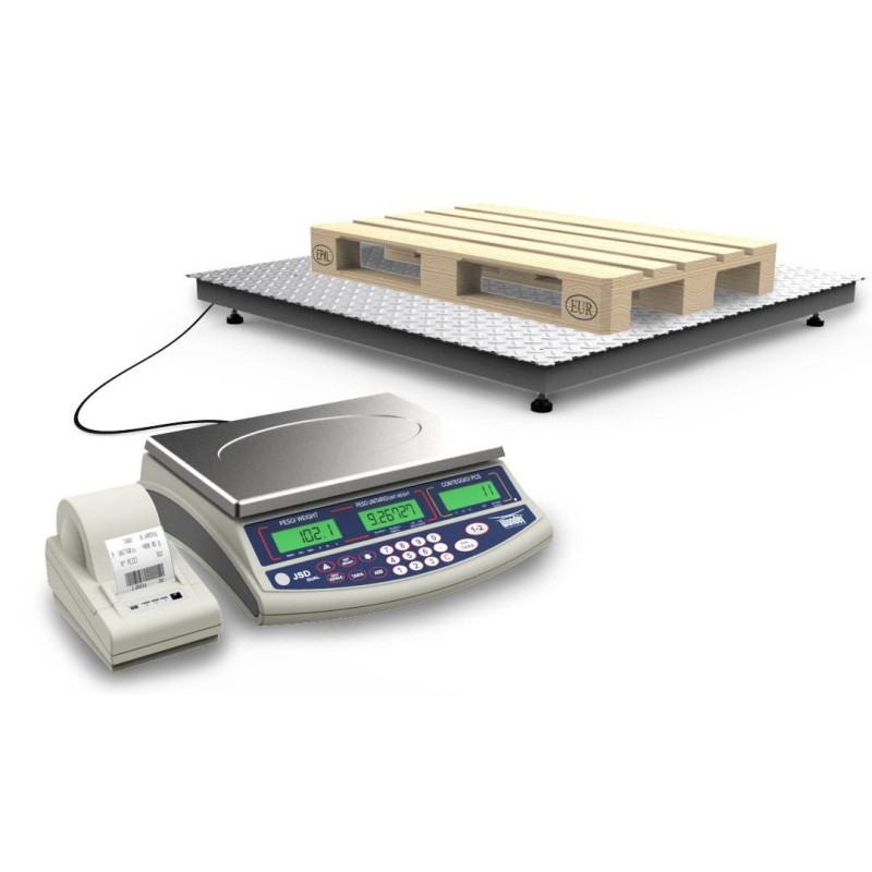 Versione da 4.000 Kg: Bilancia contapezzi con portata massima di 30 Kg e divisione di 0,5 g, abbinata a una piattaforma con portata massima di 4.000 Kg dimensioni 1500x2000 mm e risoluzione di 500 g.