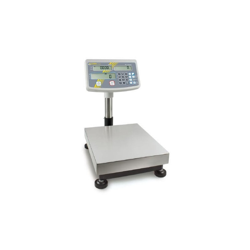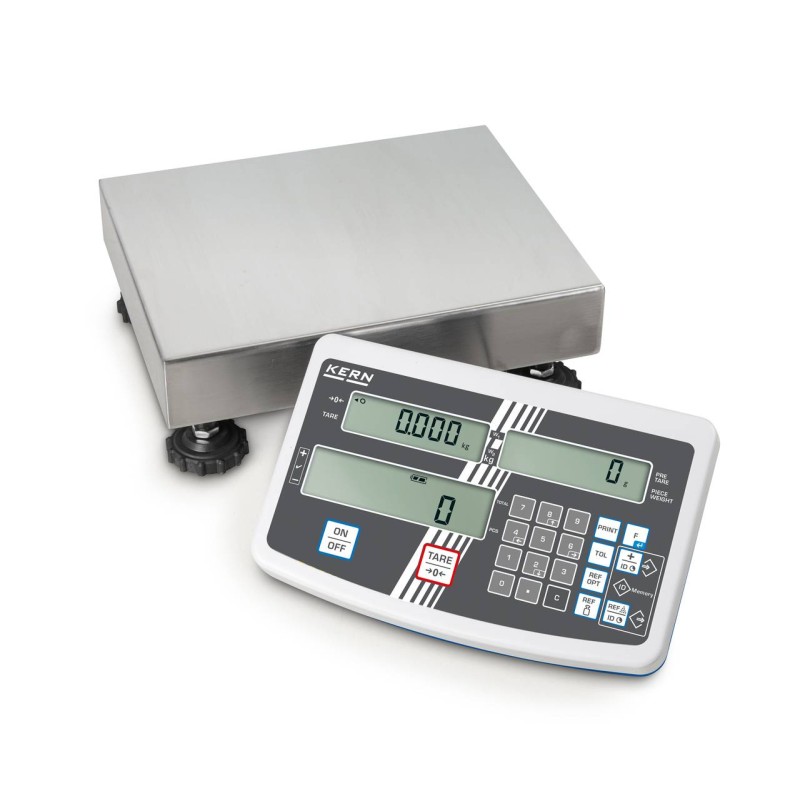 Bilancia a piattaforma contapezzi KERN IFS. Bilancia per conteggio industriale con pratico tastierino per un'agevole immissione di dati, risoluzione di conteggio fino a 75000 punti. Apparecchio indicatore ergonomico con ampio tastierino e display LCD ad alto contrasto, per un migliore inserimento e una comoda lettura ad es. di valori di tara, pesi di riferimento, valori limite ecc.[/]99 memorie per articoli per dati base quali peso di riferimento, quantità di riferimento, peso del contenitore (PRE-TARE) ecc.