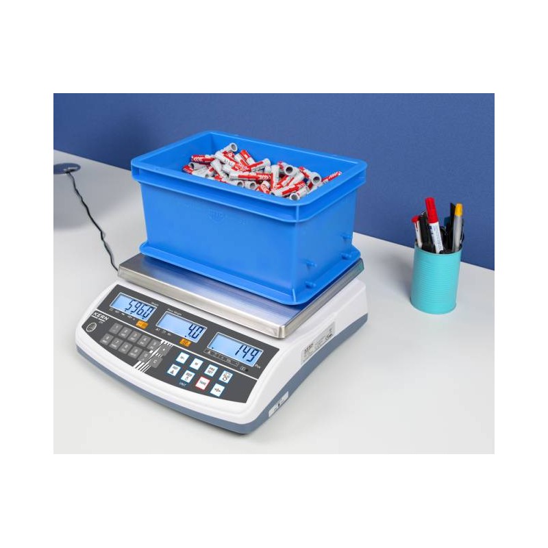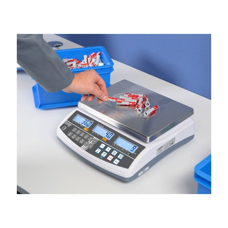 La contapezzi KERN CFS è tra gli strumenti più versatili e professionali della produzione. Memoria ampia per i principali articoli, precisione a partire da 1 mg. Con uscita seriale per stampare e collegarsi a pc. Box semaforo in opzione per ottenere avvisi luminosi al raggiungimento dei pezzi per confezione. Kern CFS ad un prezzo conveniente e prestazioni top è tra le migliori bilance contapezzi.