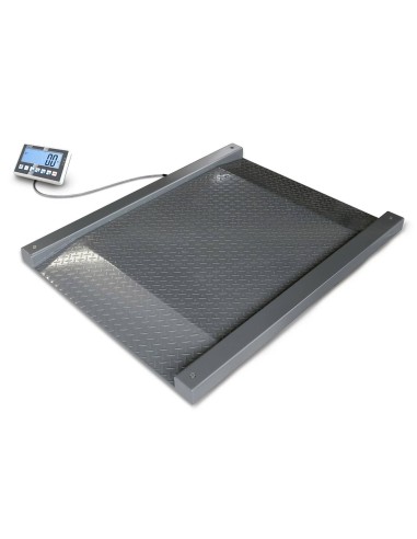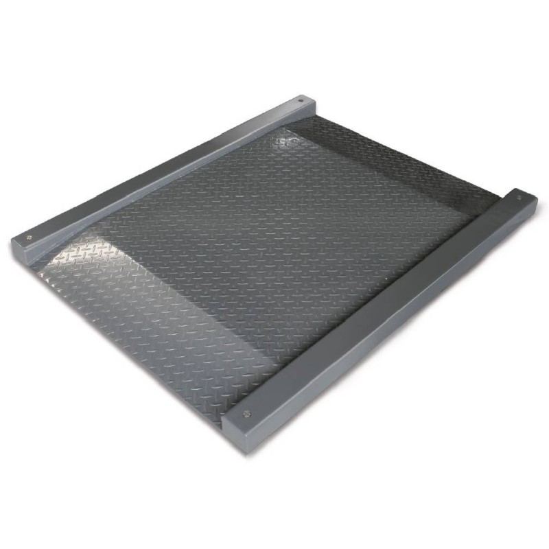 La piattaforma di pesata è costruita in lamiera zigrinata antiscivolo in acciaio inox verniciata, con protezione antipolvere ed antispruzzo secondo lo standard IP 67 secondo norma DIN 60529. Il funzionamento è con 4 celle di carico in acciaio rivestite in silicone.