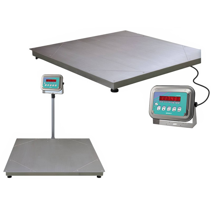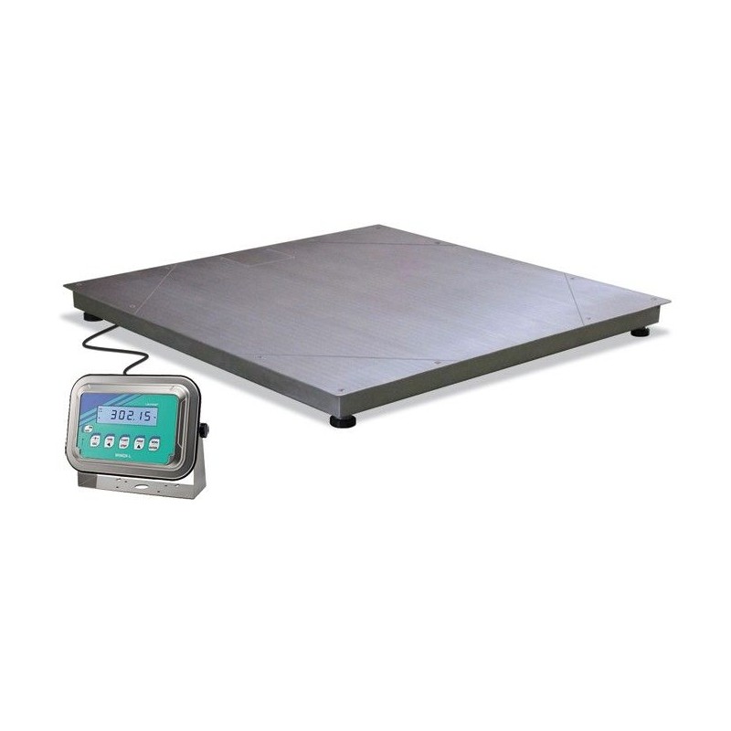 Bilancia da pavimento in acciaio inox IP68 anche per esterno. Celle di carico stagne IP68 in acciaio inox 17-4 PH; piattaforma in acciaio inox AISI 304 con piano di carico ispezionabile lato celle e lato cassetta di giunzione;cassetta di giunzione in acciaio inox IP67 con scheda di equalizzazione celle e cavo di uscita a 6 fi li (5 m);piedini snodati in acciaio inox AISI 304 autocentranti su sfera.