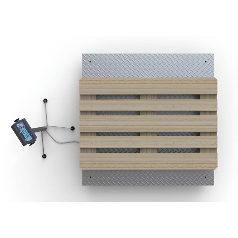 Piattaforma di pesatura : dotata di 4 celle di carico in acciaio nichelato a norme OIML R60 in classe di precisione C3, protezione IP67. Struttura portante in metallo con nervatura vernice epossidica, con profilo ultrapiatto solo (H) 80mm (con piedino 130mm) e superficie antiscivolo zigrinata. 4 piedini in acciaio inox regolabili snodati per adattarsi a pavimenti irregolari.