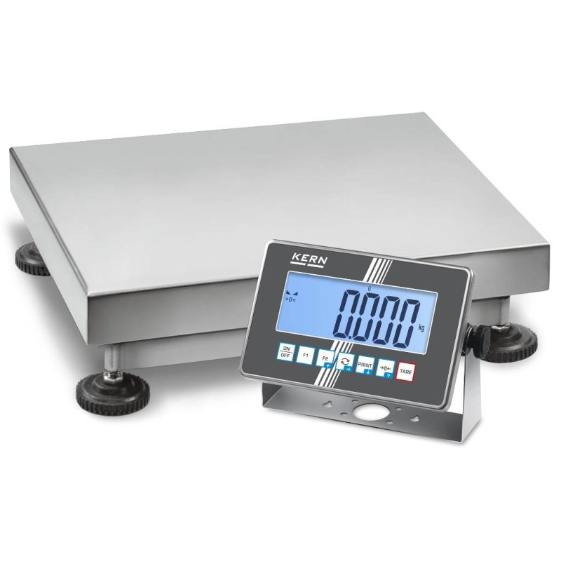 Caratterizzata da un display di ampie dimensioni, con cifre alte 48 mm e retroilluminazione, assicura una lettura chiara e immediata dei valori di pesata, anche in ambienti con illuminazione ridotta o variabile. La sua interfaccia, conforme alla filosofia KERN di facilità d'uso e coerenza nel design, nel menu e nelle funzionalità, promuove un'esperienza utente senza paragoni.