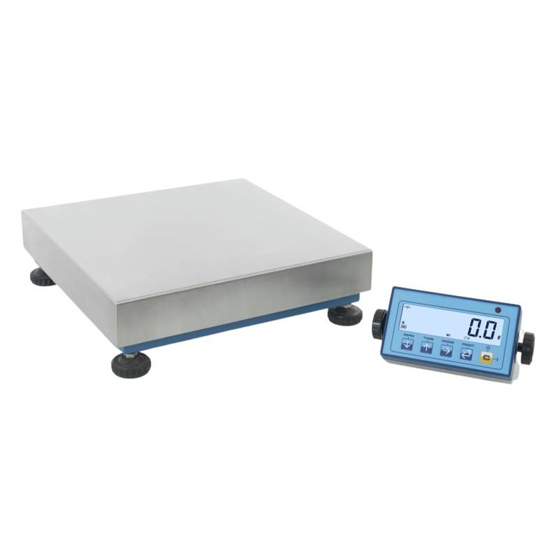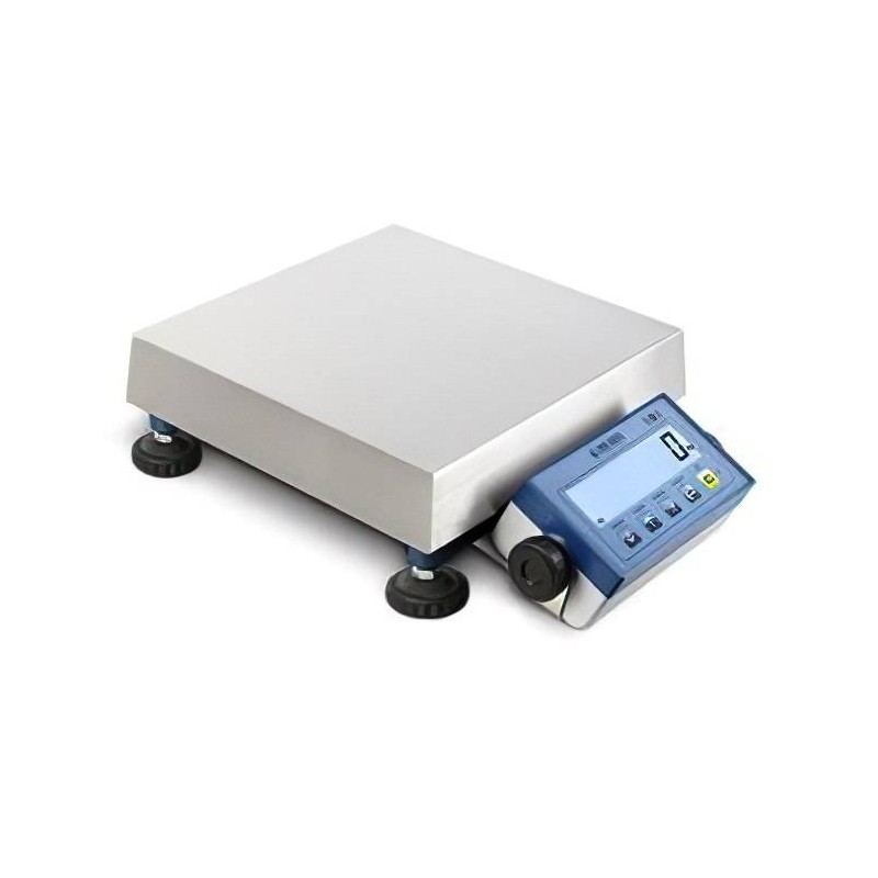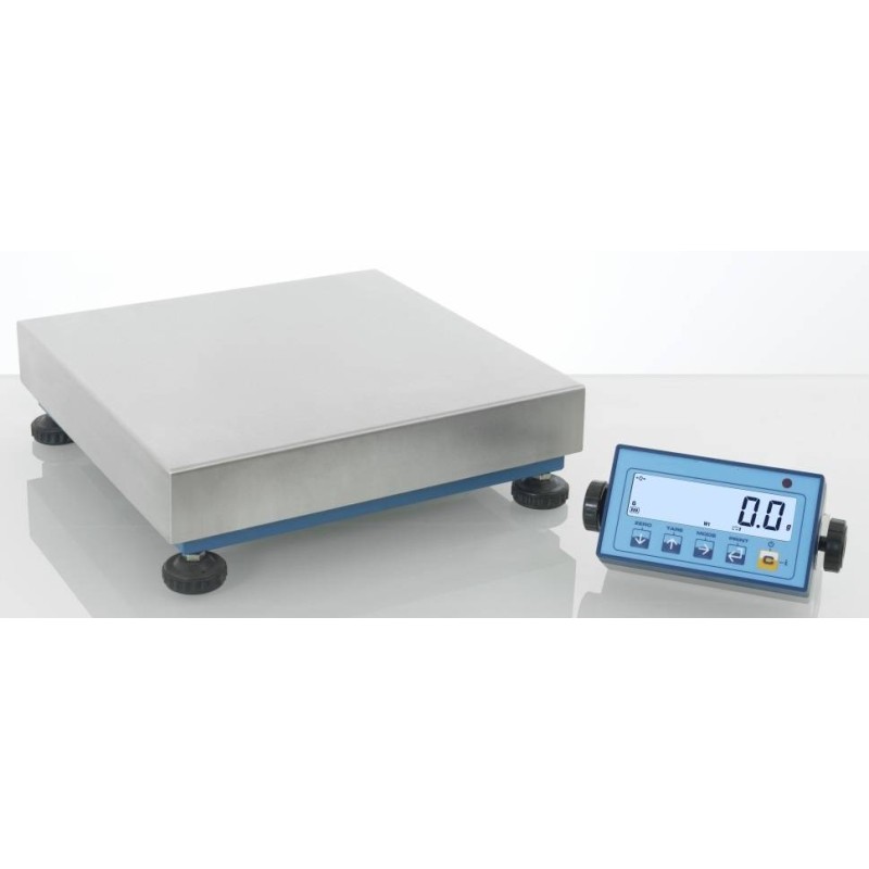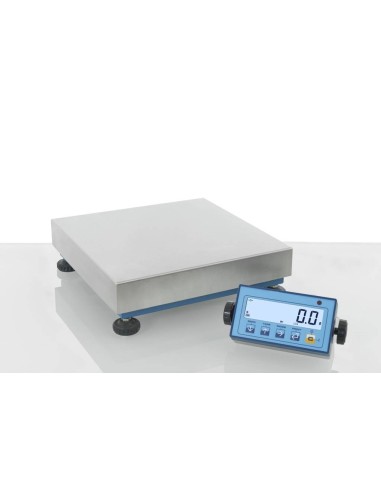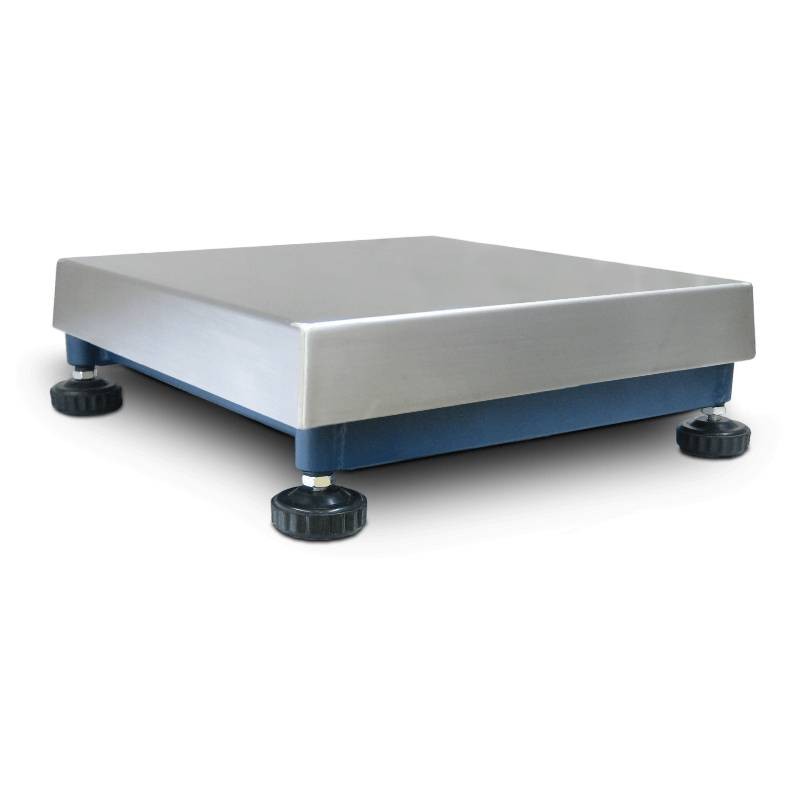 Principali caratteristiche della piattaforma: Funzionamento con cella di carico tipo off center a carico diretto, grado di protezione IP65. Errore di non linearità: 0,02% della portata nominale della cella. Struttura in tubolari di acciaio verniciati a forno di colore blu, piedini di appoggio regolabili e bolla di livello. Piano di carico in acciaio INOX. Cavo schermato di 3 metri per collegamento all’indicatore.