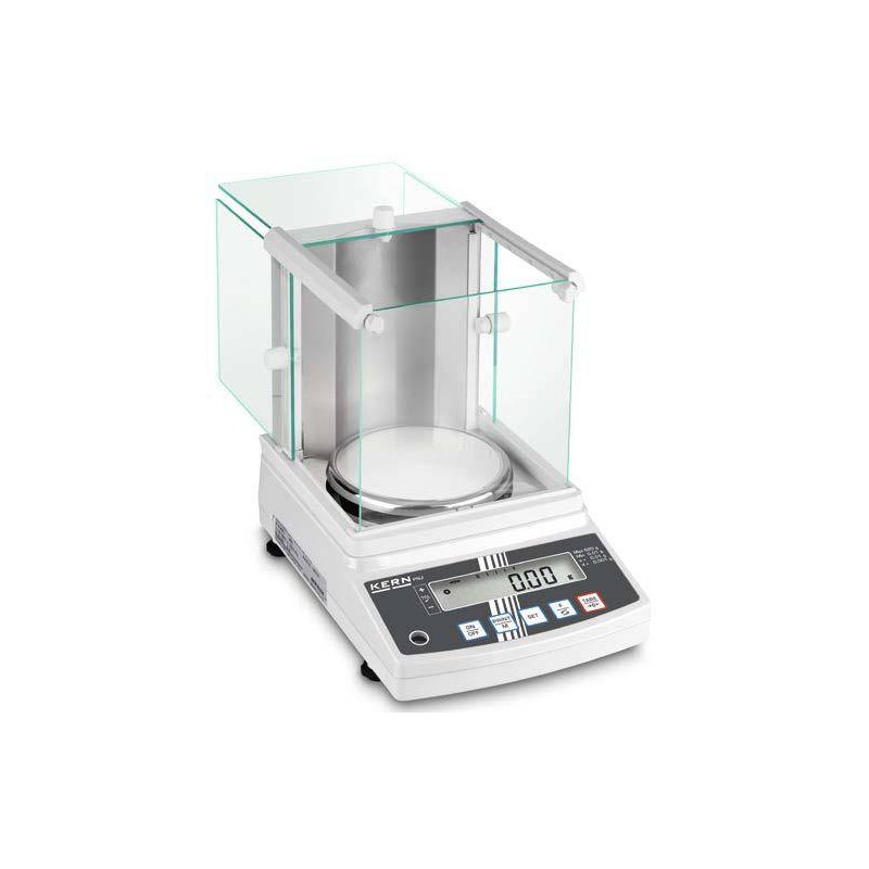 Alimentatore di rete in dotazione. Grande display LCD, altezza cifre 16,5 mm con retro-illuminazione. Gabbietta antivento in vetro di grandi dimensioni, con 3 antine scorrevoli per un agevole accesso al prodotto da pesare, dimensioni piatto di pesata Ø 140 mm, camera di pesata LxPxA 172×171×160 mm.