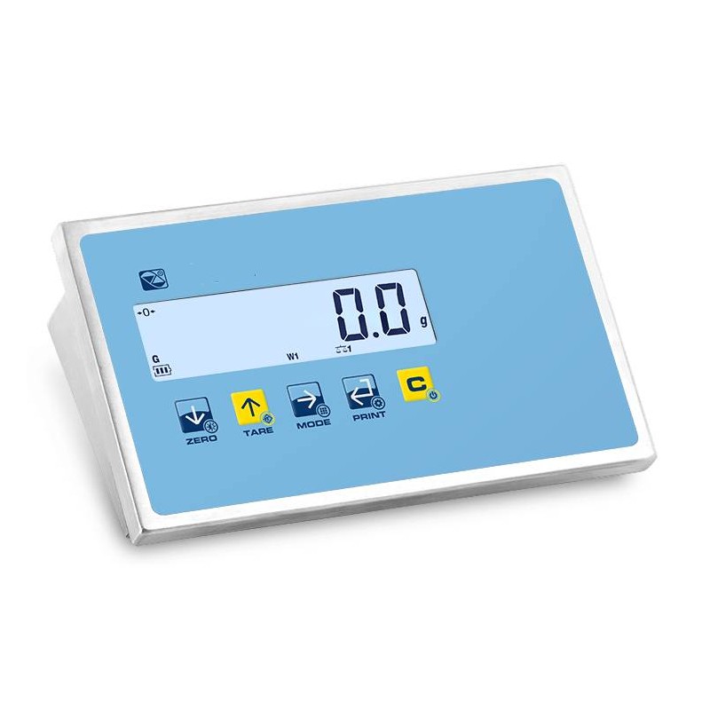 LCD retroilluminato da 25 mm con 6 cifre ad alto contrasto e icone di funzione. Tastiera: Impermeabile, con 5 tasti funzionali. Involucro: Acciaio INOX IP68, resistente e facile da pulire.