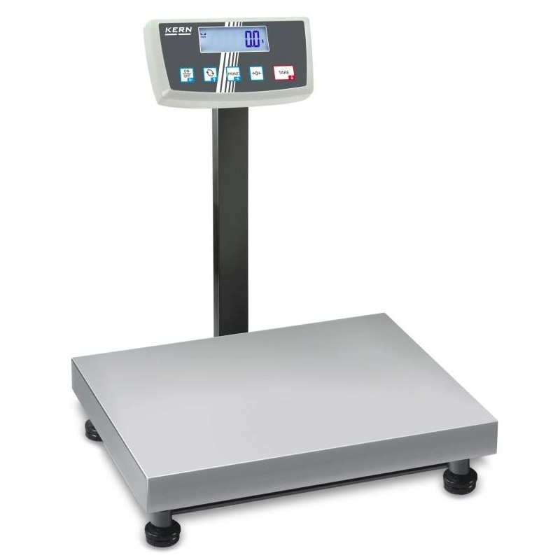 Bolla di Livello; Lunghezza cavo apparecchio indicatore:60 cm; Materiale della piatto di pesata: acciaio inox; Piedini regolabili girevoli; Superficie di pesata (LxP):500 mm x 400 mm; Supporto per fissaggio display a parete; Altezza cifre di display 21 mm; Alimentazione con adattatore incluso nella fornitura, presa EU; Sistema di pesata a Cella di carico.