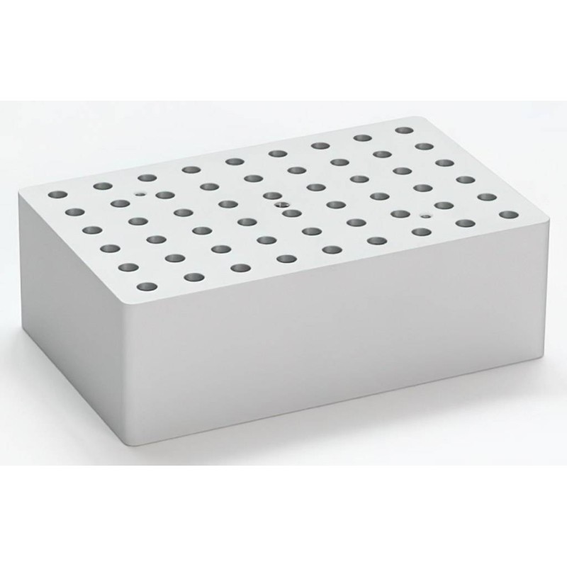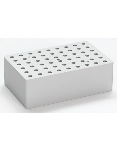 Blocco termostatico a 54 fori per provette 0,2 ml. Ogni blocco presenta un filetto centrale