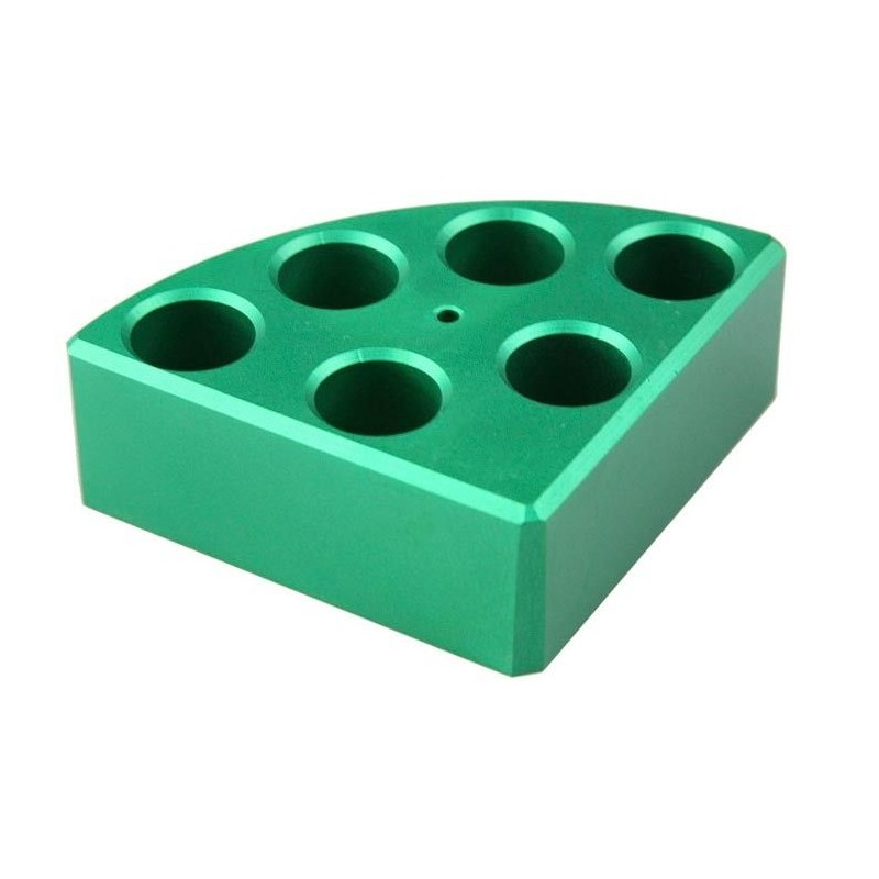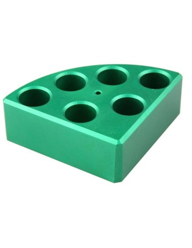 Blocco porta provette VERDE 6 posti provette 8ml Ø 17,8 mm. Consente di mantenere le provette in posizione durante l'agitazione, evitando così che si ribaltino o si muovano accidentalmente.