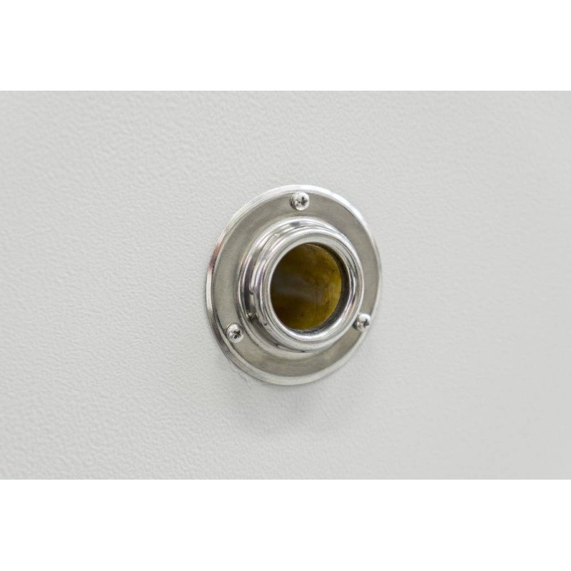 Porta esterna in acciaio con ampia finestratura in vetro per l’osservazione dei campioni.