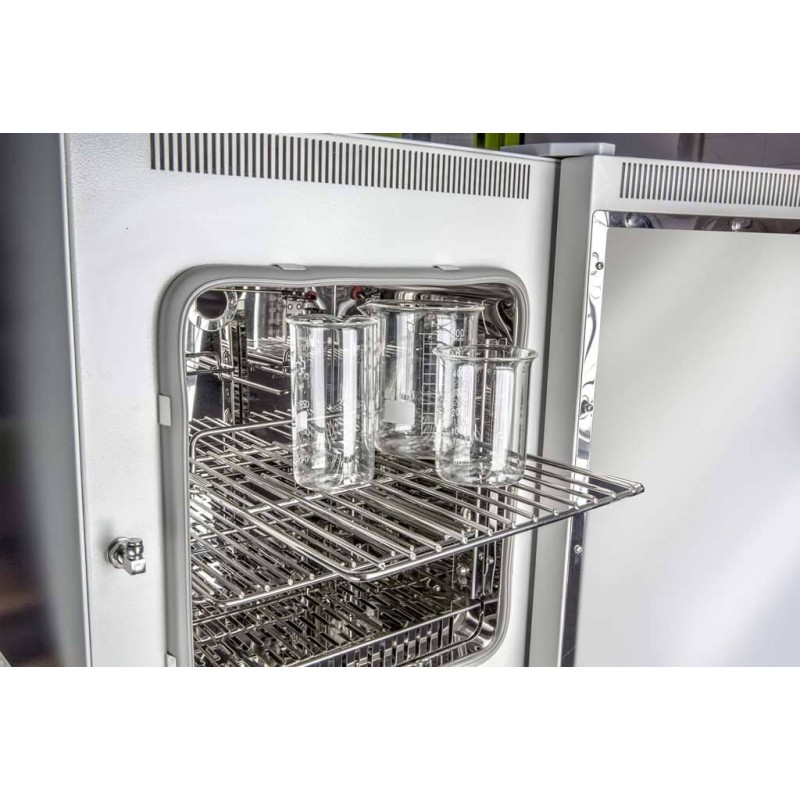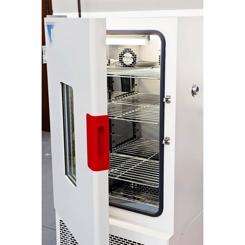 arrotondati. Porta esterna in acciaio con ampia finestratura in vetro per l’osservazione dei campioni.