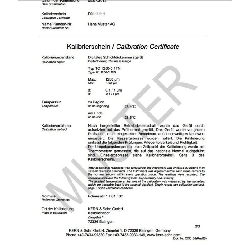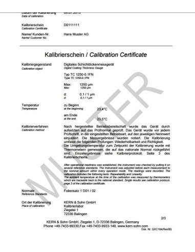 Contenuto del certificato di calibrazione: Il certificato di calibrazione include una registrazione dettagliata dei valori misurati durante il processo di taratura. È disponibile un esempio consultabile per verificare il formato e i dettagli del documento.