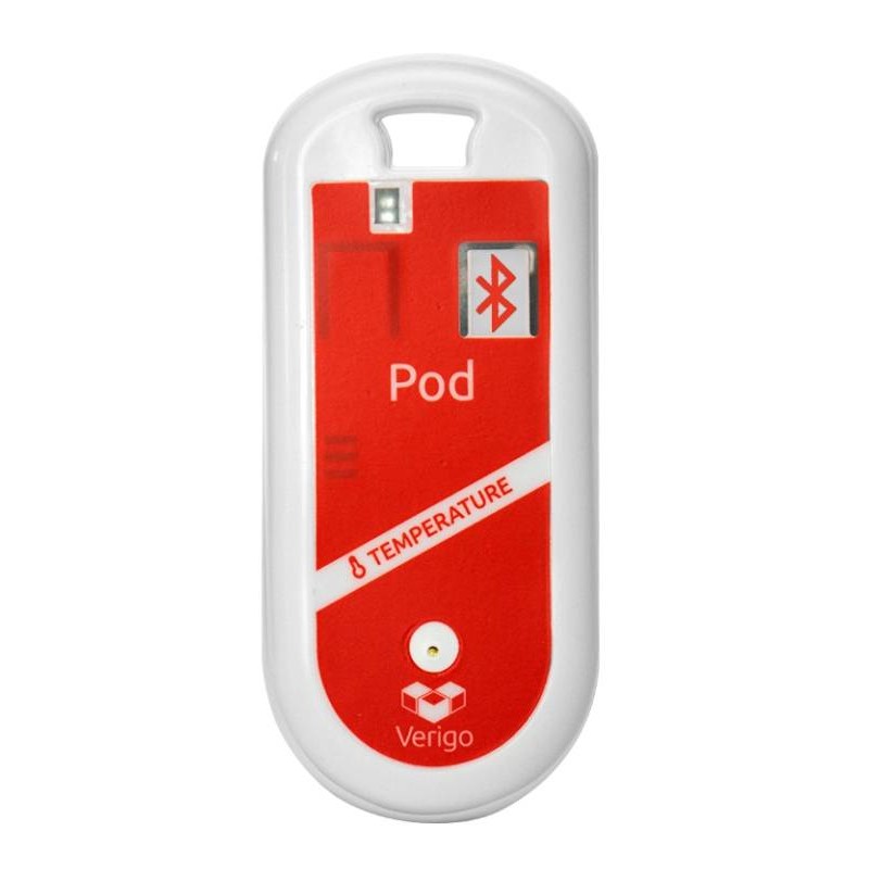 Data logger Pod Temp Verigo, registra e trasmette in modalità wireless dati di temperatura e avvisi di escursioni su smartphone e tablet. Tutti i dati vengono archiviati automaticamente nel cloud tramite Verigo Web App, che consente agli utenti di eseguire ricerche complete. Registra tutti i dati, visualizza la localizzazione e genera PDF e file CSV per la revisione e l'analisi dei dati.