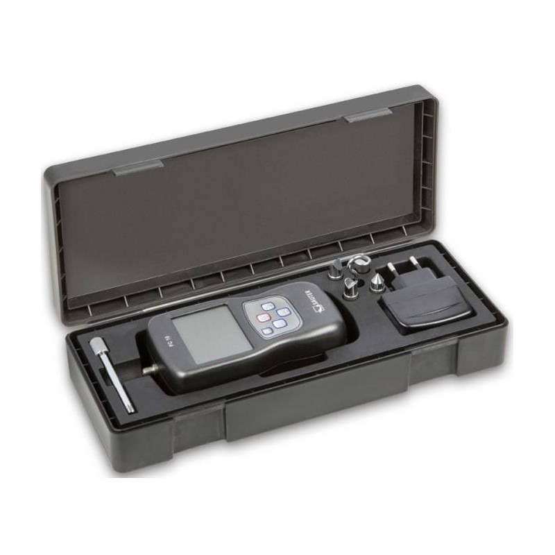 Funzione AUTO-OFF o servizio continuo. Fornito con valigetta robusta. Unità di misura selezionabili: N, kg, oz, lb. Abbinabile a tutti i banchi di prova SAUTER (con un adattatore).