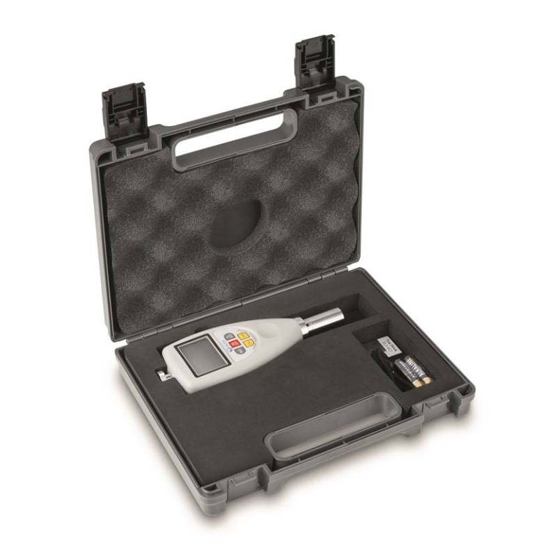 Durometro digitale Sauter HD con scala in Shore A, 0 e D per la determinazione della durezza di gomma e delle materie plastiche tramite misurazione a penetrazione.
