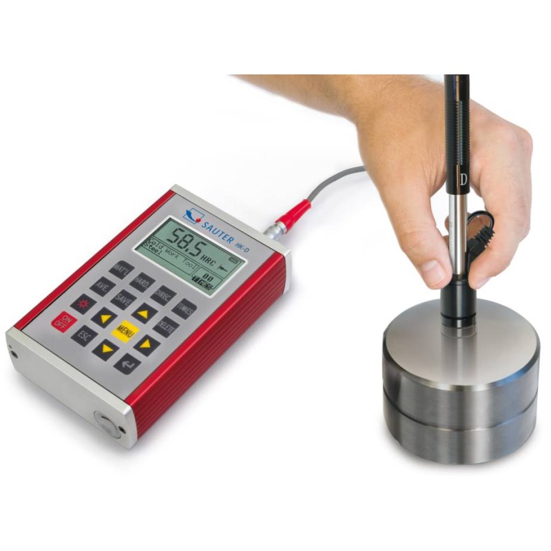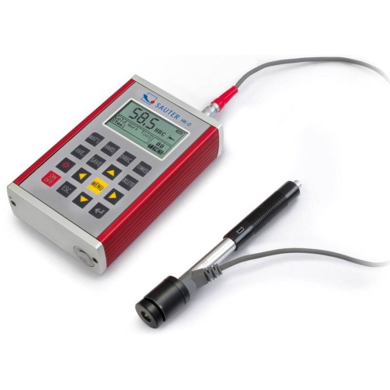 Durometro per metalli Sauter HK-D per prove di durezza dei metalli Leeb. Involucro metallico e memorizzazione di 600 dati con uscita USB e valigia di trasporto.Statistiche di misurazioni consultabili sul display, è idoneo per tutti i metalli. Schermo grande su cui sono visualizzati tutte le funzioni e parametri. Visualizzazione diretta e conversione in scale di durezza HRA, HRB, HRC, HV, HB, HS.
