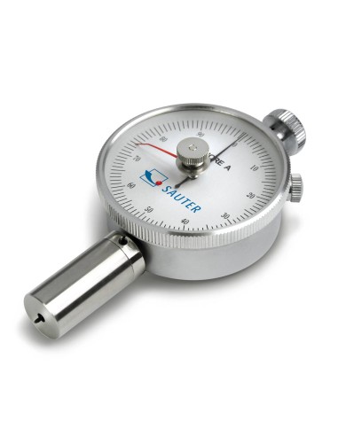 Durometro manuale Shore A, A0 e D per gomme e plastiche mod. Sauter HB. Progettato secondo gli standard DIN 53505, ASTM D2240 e ISO 868. Disponibile con tre diversi puntali, non intercambiabili, per ogni gamma di durezza. Per misure accurate, il materiale di prova deve avere uno spessore di almeno 4 mm.