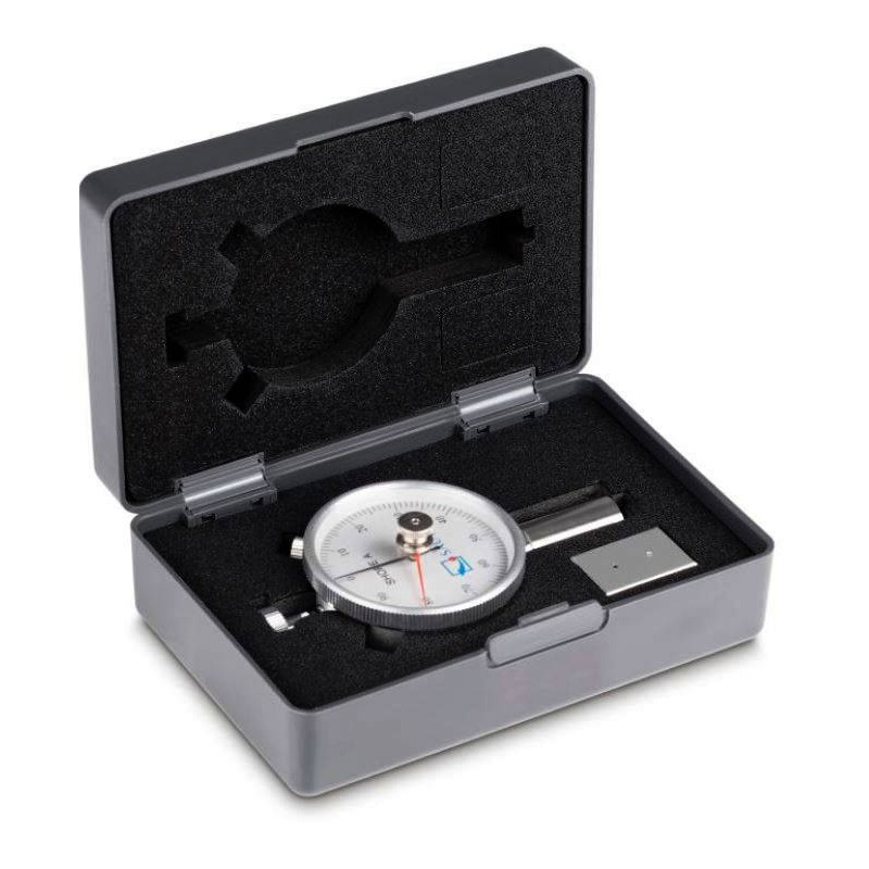 Questo durometro analogico Shore, come molti altri durometri, misura la profondità di penetrazione in un materiale per mezzo di una forza generata su un accessorio di misurazione standardizzato. Questa profondità dipende dalla durezza del materiale, dalle sue proprietà