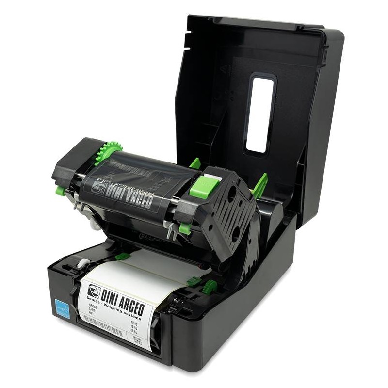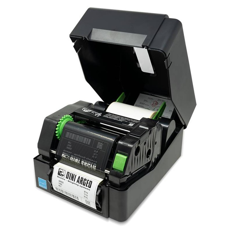 Etichettatrice termica diretta fornita di meccanismo spellicolatore di serie. Software per etichette personalizzate con loghi, immagini, dati di peso e barcode. Interfacce: USB 2.0, Internal Ethernet, 10/100 Mbps, RS232. Tutti i più comuni codici a barre oltre a codici 2D. Riavvolgitore ribbon di serie.