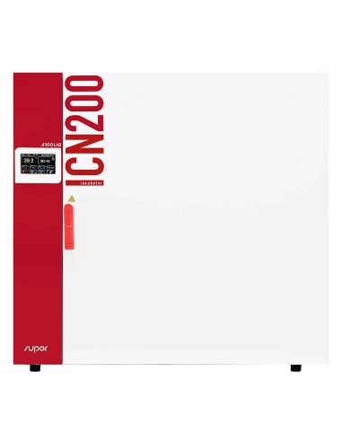 ICN 200 incubatore da laboratorio ArgoLab. Grandi dimensioni (200 litri utili) per condurre esperimenti, colture cellulari o colture batteriche su larga scala. Bassi consumi, controller digitale e e porta interna in vetro. Timer 99 h 59 min. e infinito. Classe di sicurezza 3.1. Due ripiani di serie ( fino a 9 in opzione) con carico fino a 20 kg/cadauno. Funzione di "Temperatura Sicura" regolabile.