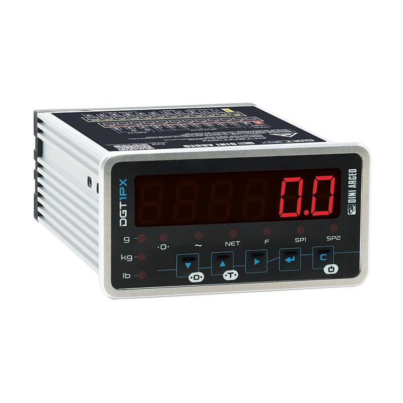 Trasmettitore di peso da pannello con scocca in alluminio. 2 IN, 2 OUT e Ethernet/IP. Tastiera a 5 tasti, display a LED. |
