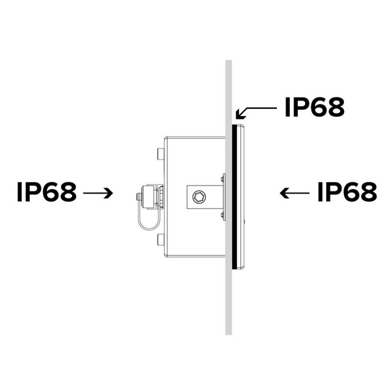 - installazione a pannello con grado di protezione IP68 sia frontale che posteriore, ideale per l'industria chimica, farmaceutica e alimentare e per ambienti gravosi.