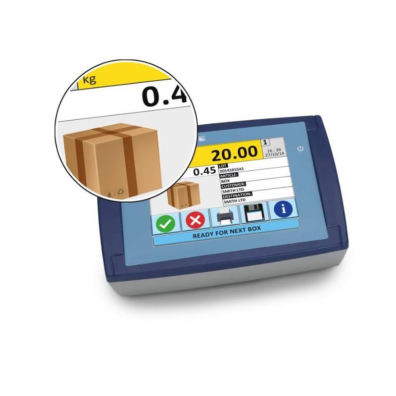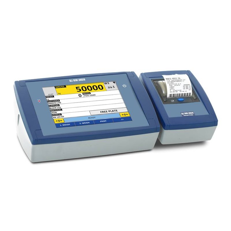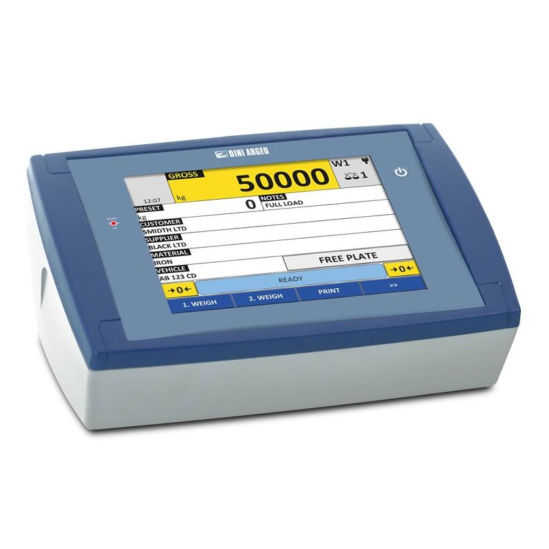Indicatore di peso digitale con grande display touch screen da 8", indicato per applicazioni industriali evolute. Permette la visualizzazione di tutti i dati legati alla pesata e la personalizzazione delle schermate, semplificando notevolmente le operazioni dell'utente. Dotato di serie di 3 porte seriali, porta Ethernet, protocolli di trasmissione per comunicazione dati, stampe completamente configurabili, alibi memory integrata e ingresso per lettore di barcode/badge.