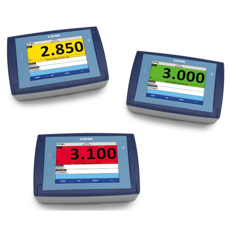 Due innovazioni in una per questo straordinario indicatore digitale di peso : touch screen a colori e dimensioni maxi da 8 pollici per una straordinaria usabilità. Nato per soddisfare qualsiasi esigenza di pesatura industriale, è completamente configurabile con applicativi e funzionalità. Fornito di serie con porta Ethernet. Grazie al touch screen potrete creare l'interfaccia su misura per Voi.