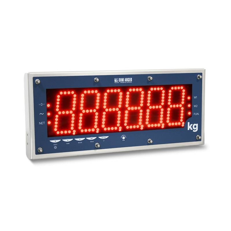 Indicatore / Ripetitore di peso con grande display a matrice di LED superluminosi ad alta intensità. Particolarmente adatto per utilizzo in ambiente esterno, è ben visibile anche in piena luce solare e dove occorre avere una lettura del peso a distanza da qualsiasi angolazione. Custodia completamente in acciaio INOX AISI 304 con protezione IP68. Omologato CE-M (OIML R-76 / EN 45501). Omologato MID (OIML R-61).