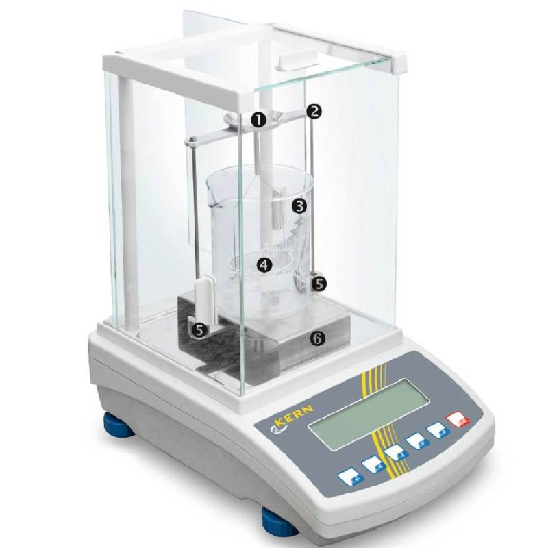 Kit universale YDB-03 per la determinazione di densità di solidi e liquidi da utilizzare con bilance Kern a 4 e 5 digits. Utilizzando il nostro kit per determinazione di densità collegabile alle bilance analitiche dell’azienda KERN è possibile determinare in modo sicuro e veloce la densità dei corpi solidi e dei liquidi. Il funzionamento del kit è basato sul “principio di Archimede.