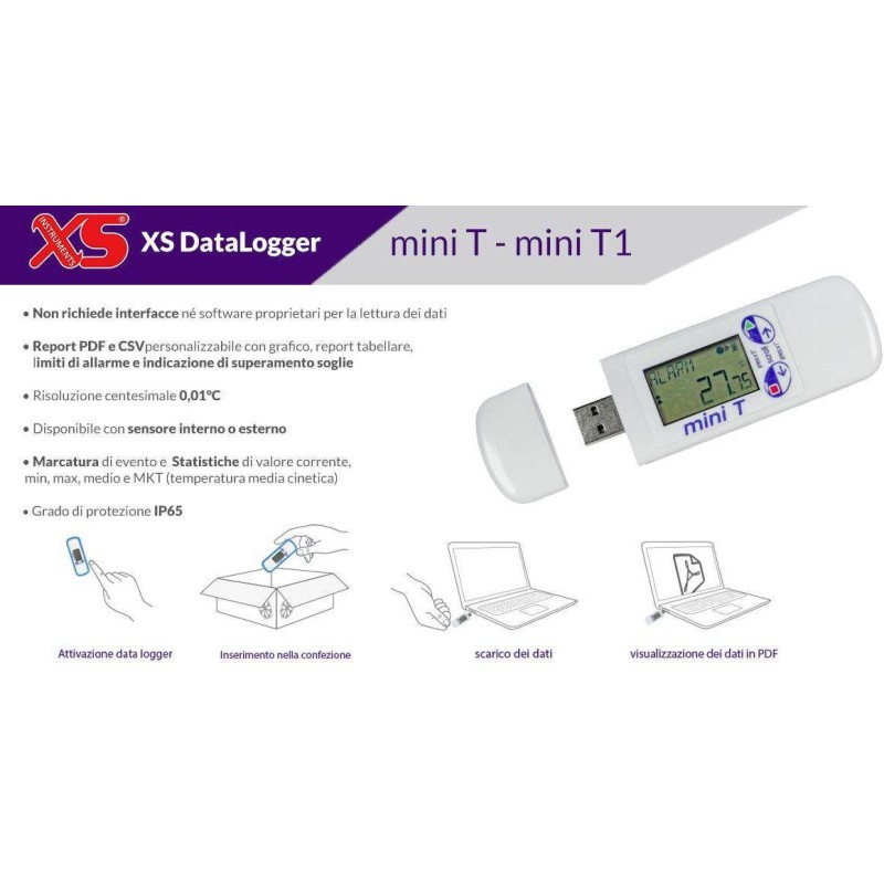 Il MINI T1 è un data logger di temperatura con sonda esterna. Questa tipologia di logger risulta estremamente utile quando desideriamo poter avere accesso visivo al display e poter posizionare il sensore all'interno di contenitori, borse termiche, frigoriferi ecc. Il cavo lungo 1 metro permette , anche attraverso appositi fori, di collocare il MINI T1 a favore di operatore per controllare le temperature e gli eventuali allarmi agevolmente.