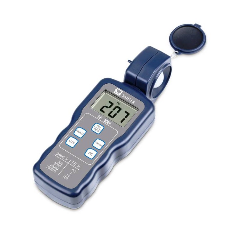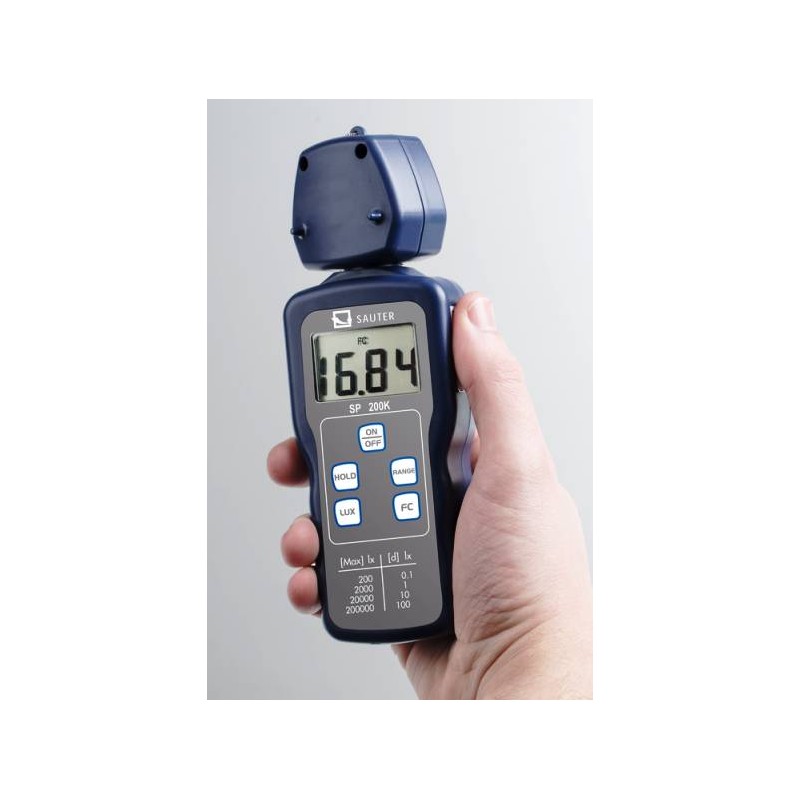 Luxmetro digitale SP 200K è uno strumento professionale, di precisione, per misurare l'illuminazione , anche LED, nei luoghi di lavoro e completo di certificato di calibrazione. Il sensore ha una correzione completa del coseno per l'incidenza obliqua della luce. Lo strumento è compatto, robusto e facile da usare grazie al suo design.