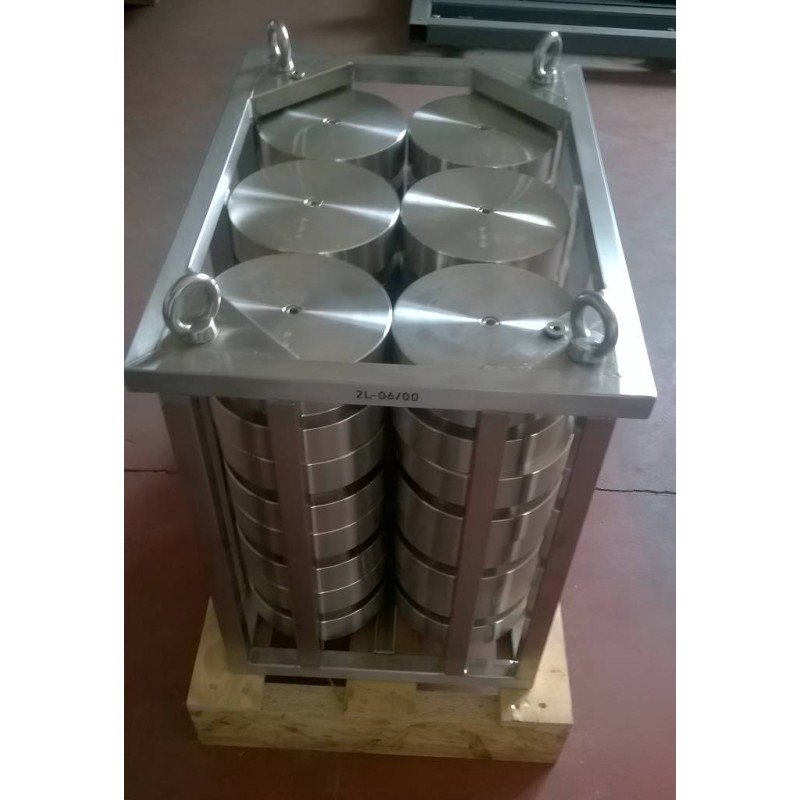 MASSE SINGOLE A DISCO E ASTE PORTA PESI IN CLASSE DI PRECISIONE M1 CONFORMI OIML R-111. Esecuzione in ACCIAIO INOX LUCIDATO.