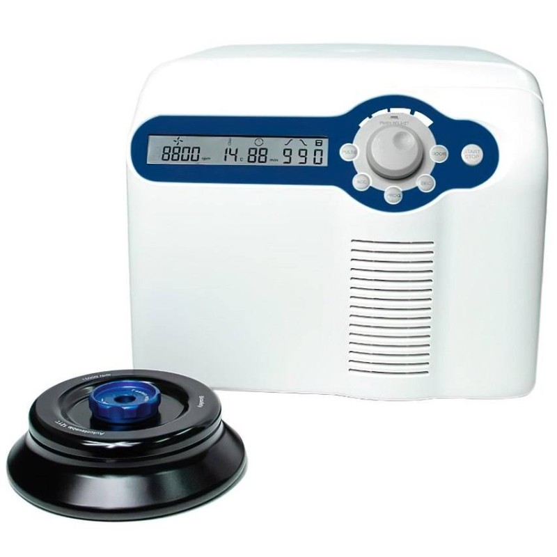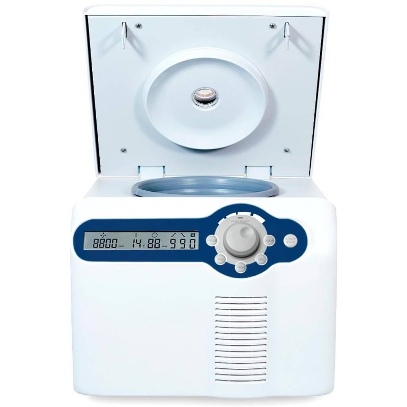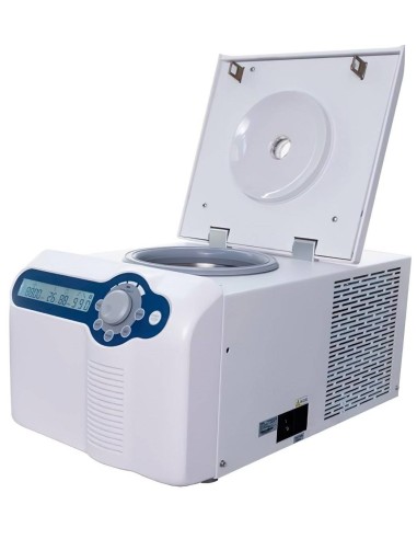 Microcentrifuga refrigerata da banco ad elevate prestazioni, ridotto ingombro e di facile utilizzo anche grazie alla modesta altezza di accesso. Temperatura impostabile da -20 a +40°C, con incrementi e decrementi di 1°C. Funzione "Precool", per il raffreddamento rapido della centrifuga.