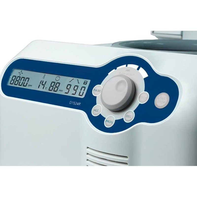 MicroCentrifuga REFRIGERATA D1524R con Rotore. Temperatura impostabile da -20 a +40°C. Funzione "Precool", per il raffreddamento rapido della centrifuga. Motore ad induzione ultra silenzioso, ampio display LCD retroilluminato e coperchio. Velocità: impostabile da 200 a 15.000 rpm, RCF impostabile fino a 21.380xg. Capacità massima di carico 24 x 2 ml.