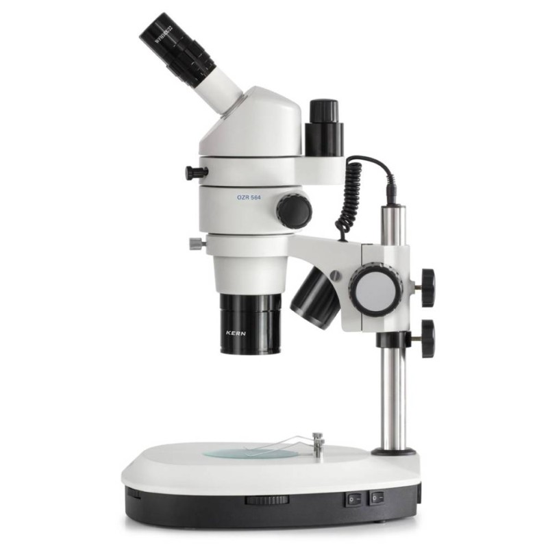 La serie KERN OZS-5 offre due varianti: una dotata di illuminazione LED 3W regolabile in modo continuo per una perfetta illuminazione del campione ad alto contrasto e una variante senza illuminazione.