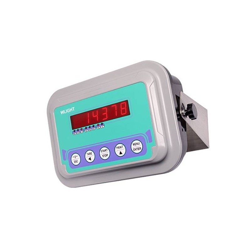 Indicatore di peso in ABS (dim.: 120x200x280 mm). Grado di protezione IP40. Display semi-alfanumerico a LED rossi, 6 cifre da 20 mm. 8 LED di segnalazione. Tastiera a 5 tasti. Orologio/calendario con batteria tampone. Alimentatore stabilizzato 24 VDC/1 A - ingresso 100÷240 VAC incluso. Installazione: tavolo, parete, colonna. Può funzionare anche a batteria grazie ad 8 batterie ricaricabili NiMH, 1.2 V, tipo AA incluse.